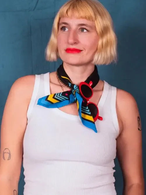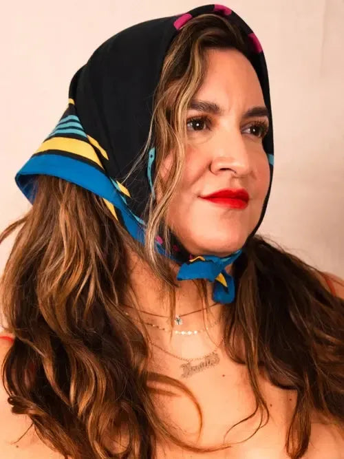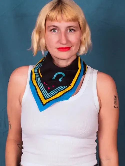 A simple, yet bold print with blue border. This bandana is hand-block printed in limited quantities.