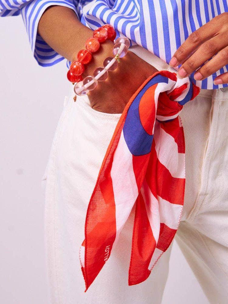 A little romance, done right. Cherry-inspired print with a playful, polished feel in a lightweight cotton with a soft hand feel. Tie it on your neck or bag for a pop of personality.