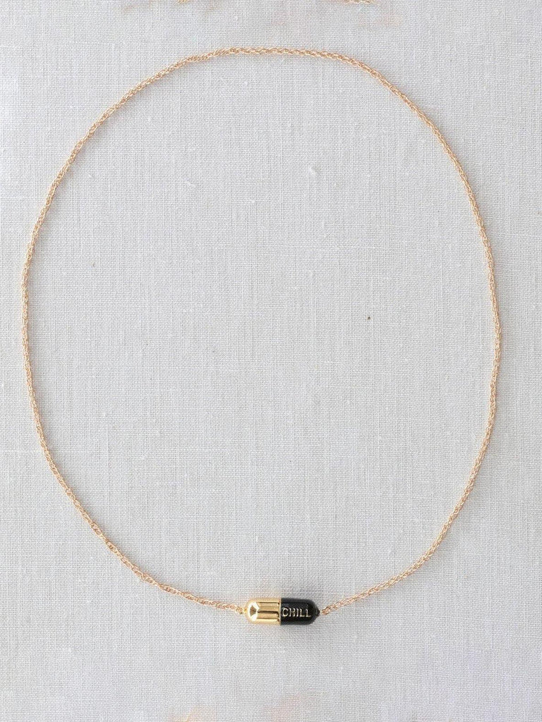 18k gold vermeil and enamel chill pill on gold filled rope chain.