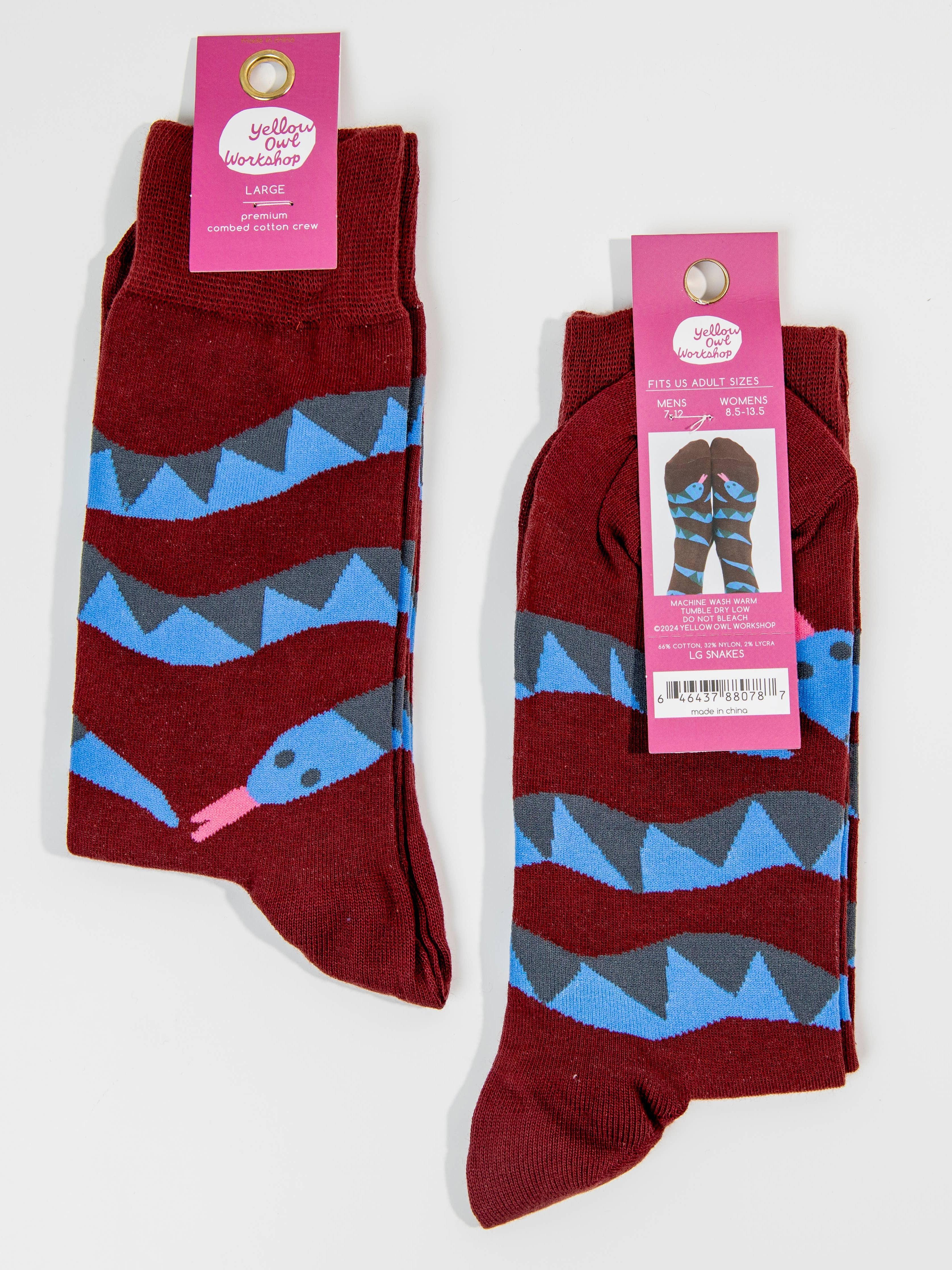 Yellow Owl - Snakes - Large Crew Socks