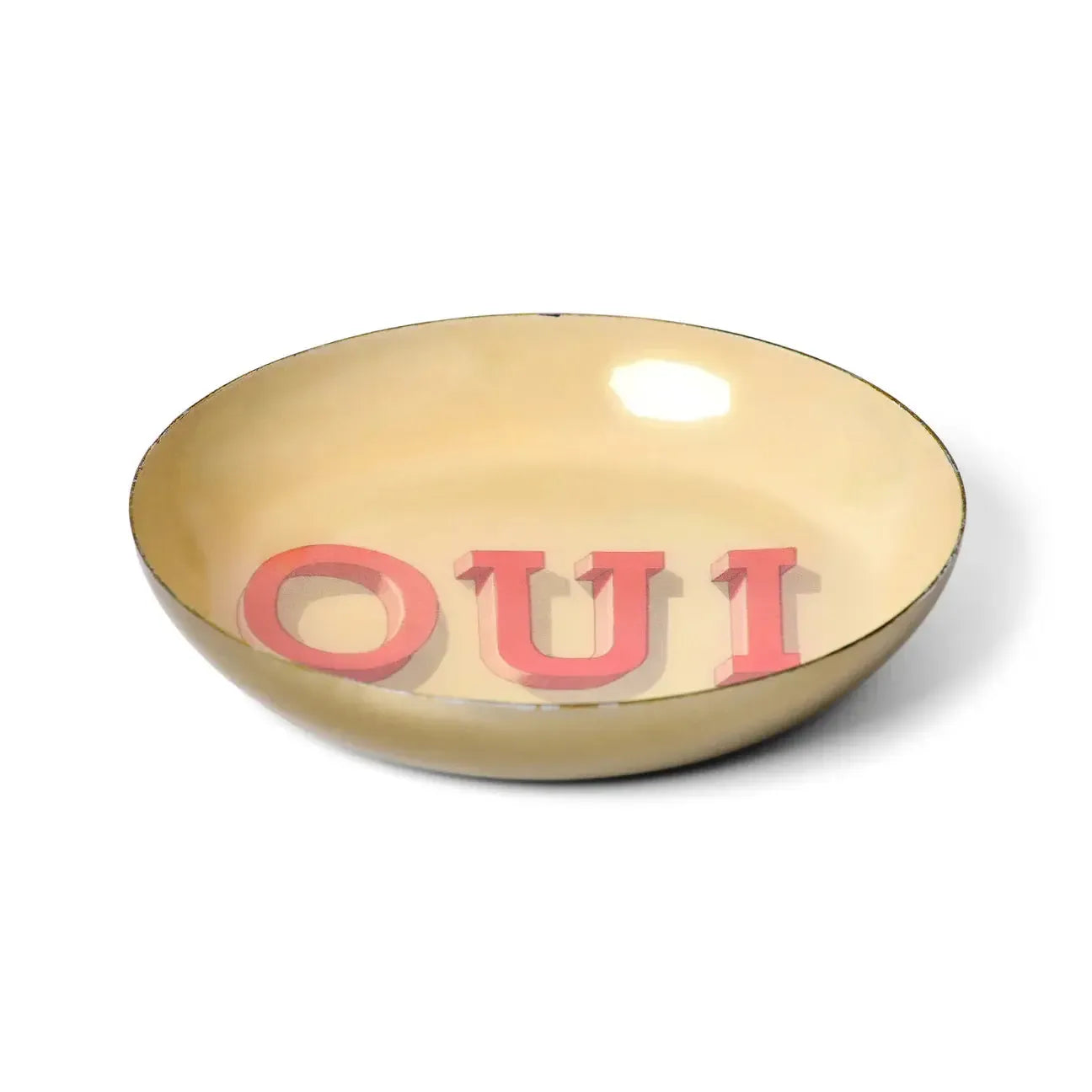 This decorative 'Oui' Enamel Tray will bring instant personality into your home. Perfect home accessory for holding jewelry, stationery and other small trinkets.