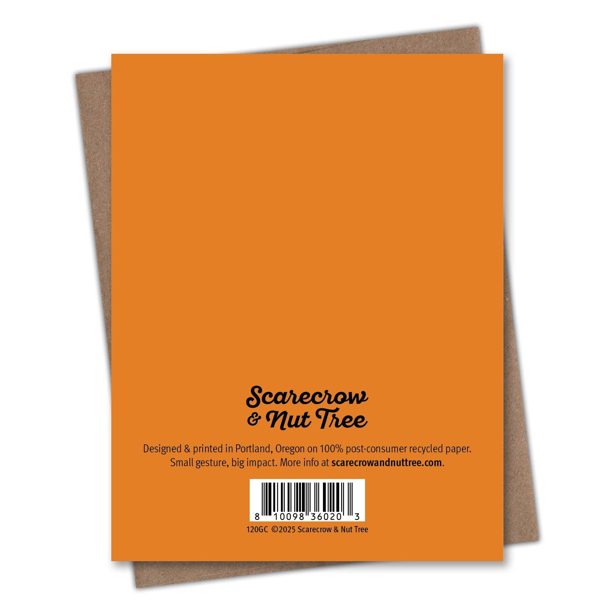 This Birthday card is printed on 100% recycled paper because we love trees as much as we love helping you connect. All Scarecrow & Nut Tree greeting cards are blank inside, which means you can write whatever you want. We’re partial to something personal, playful, or punny. But you do you. Comes with a recycled Kraft envelope so the whole thing is easy on the eyes and the earth.