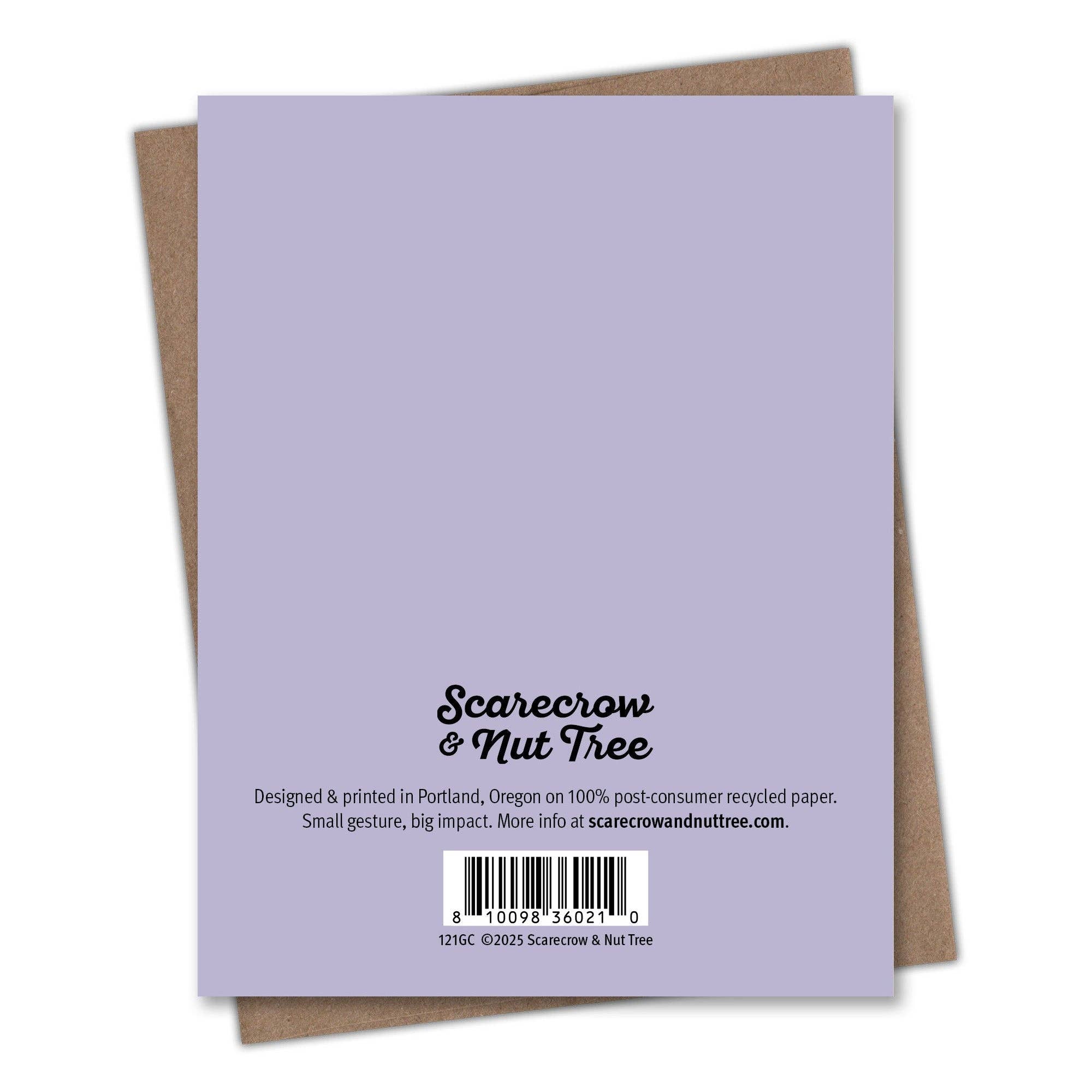This Birthday card is printed on 100% recycled paper because we love trees as much as we love helping you connect. All Scarecrow & Nut Tree greeting cards are blank inside, which means you can write whatever you want. We’re partial to something personal, playful, or punny. But you do you. Comes with a recycled Kraft envelope so the whole thing is easy on the eyes and the earth.