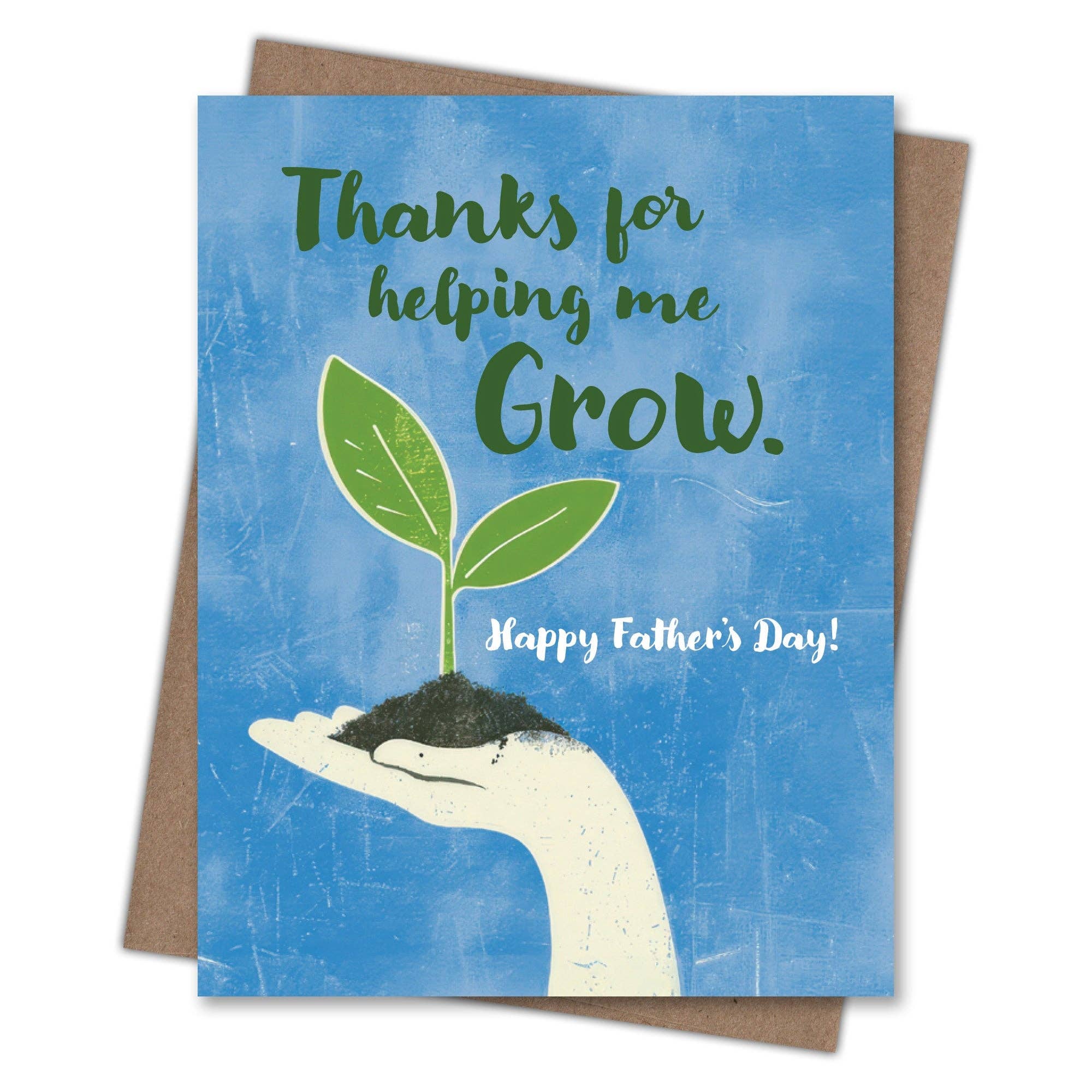 A hand cradling a tender seedling illustrates all the ways Dad helps things grow, making this a heartfelt card for gardening dads and thoughtful gift givers. Printed on 100 percent recycled paper because we love trees as much as we love helping you connect. Blank inside so you can write whatever you want. Comes with a recycled kraft envelope so the whole thing is easy on the eyes and the earth.