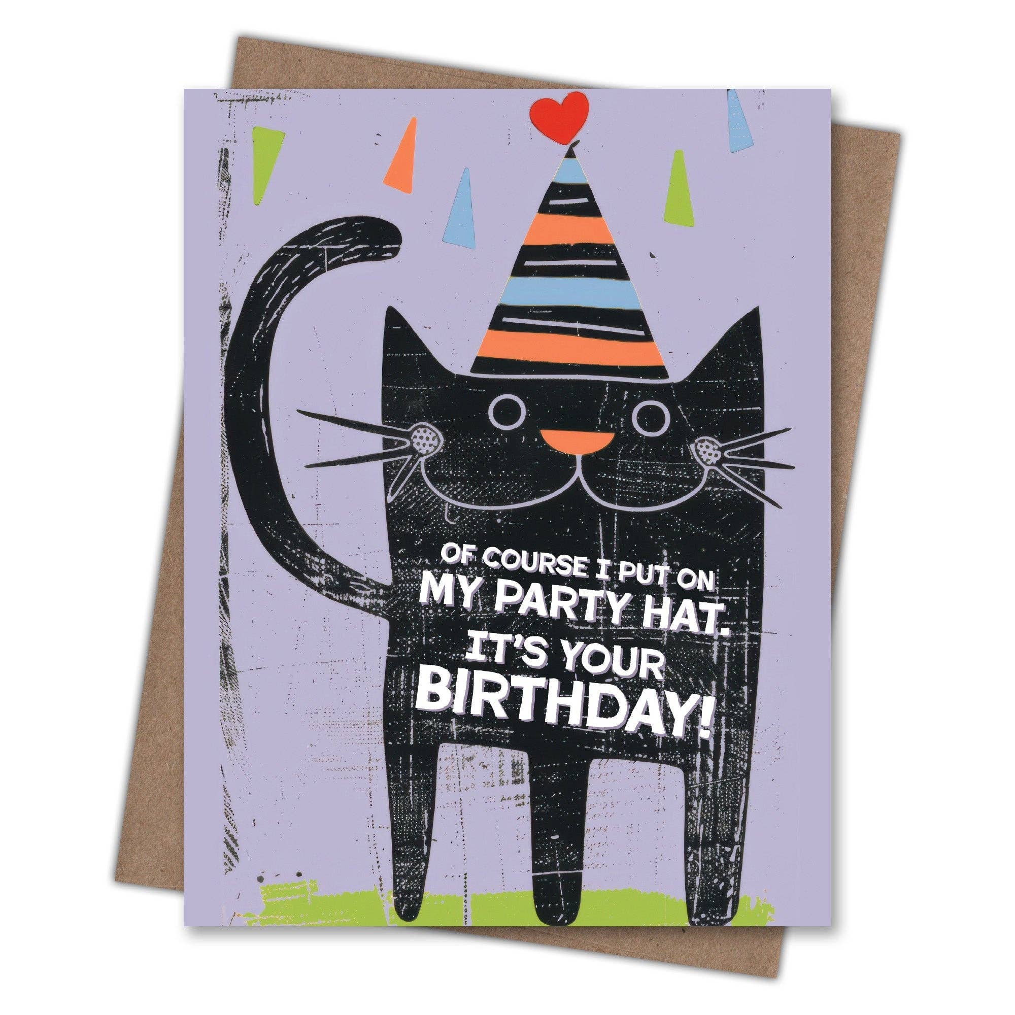 Scarecrow & Nut Tree - Party Hat Cat Birthday Card