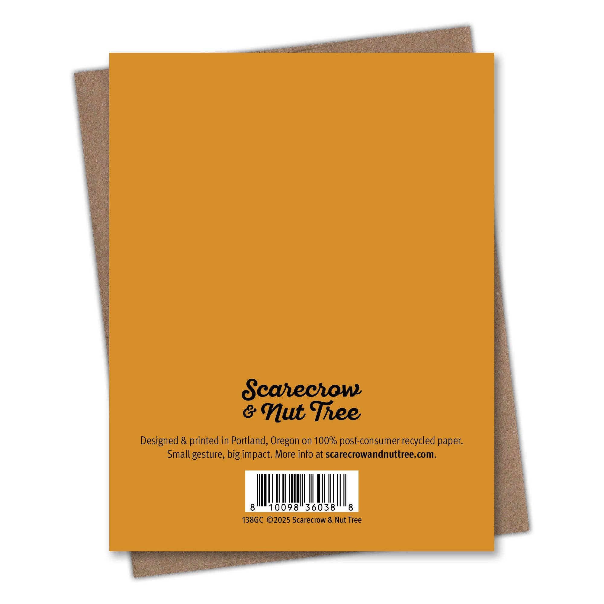 This Birthday card is printed on 100% recycled paper because we love trees as much as we love helping you connect. All Scarecrow & Nut Tree greeting cards are blank inside, which means you can write whatever you want. We’re partial to something personal, playful, or punny. But you do you. Comes with a recycled Kraft envelope so the whole thing is easy on the eyes and the earth.