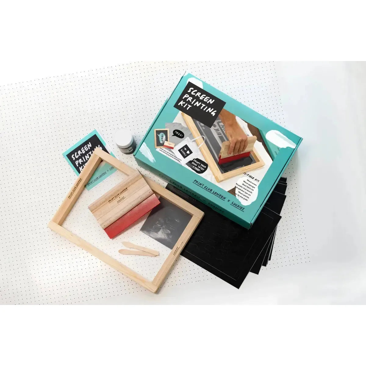 Your kit and step-by-step guide has been developed by Luckies with Print Club London so that anyone can design their own t-shirts, tea towels, bags and banners, whether or not they’ve printed before. Our reusable templates and water based inks mean no nasty chemicals or single use screens. Just print, rinse and repeat. All you need is water, tape and some fresh ideas! - Easy screen printing set designed in collaboration with Print Club London.