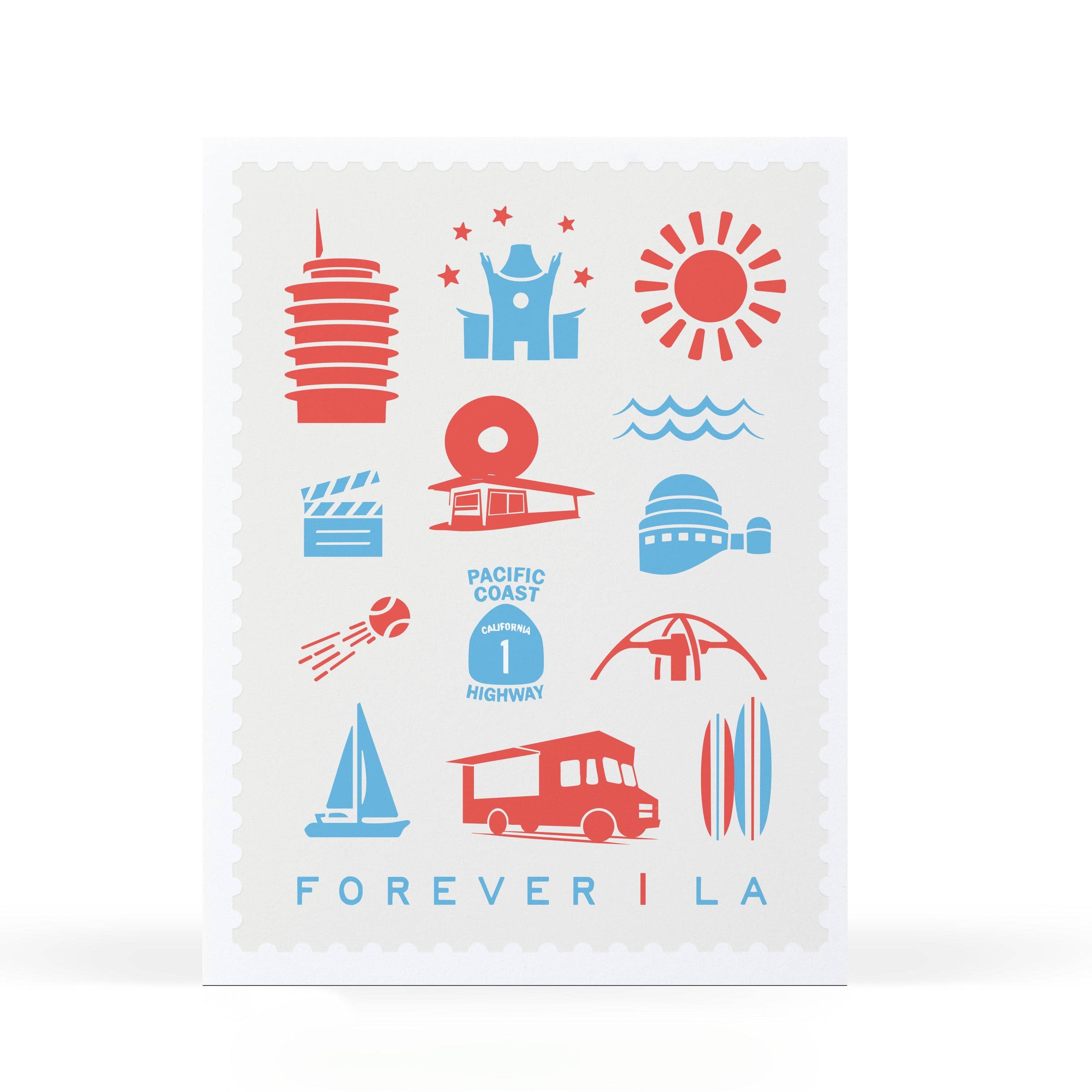 Featuring iconic Los Angeles architecture like the Griffith Observatory, the Capitol Records Building, Randy's Donuts, Highway 1 PCH, LAX, food trucks and more. Love these cards...you can feel the texture from the letterpress printing.