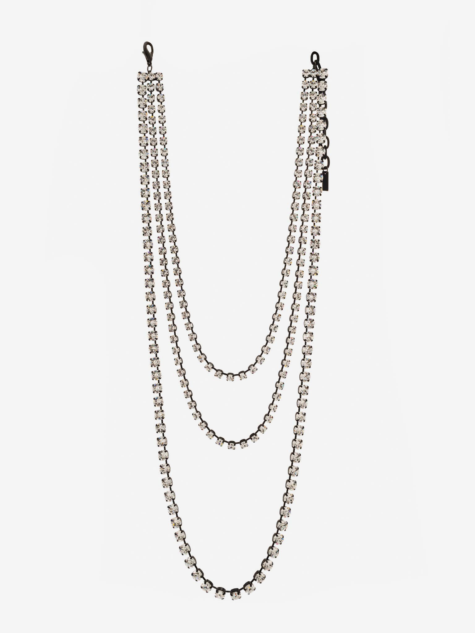 Introducing our Triple Metallic Pow Necklace in Smutt / Clear! This stylish jewelry piece features 3 long layered strands of beautiful Swarovski crystals on smutt plated brass and is guaranteed to add some Pow-er to your look!