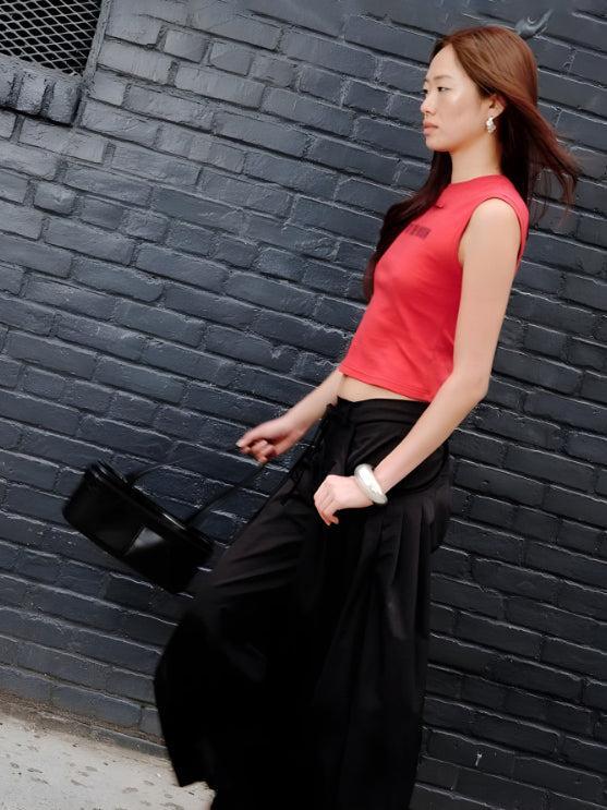 It's all about baggy, oversized trousers and Woodrose Deli has it down. These lovelies feature super-wide legs with scooped, flat pleated wrap-around-from-front-to-back pockets...amazing!! Zipper fly with button closure and tie at waist. You'll get stopped on the street....guaranteed.