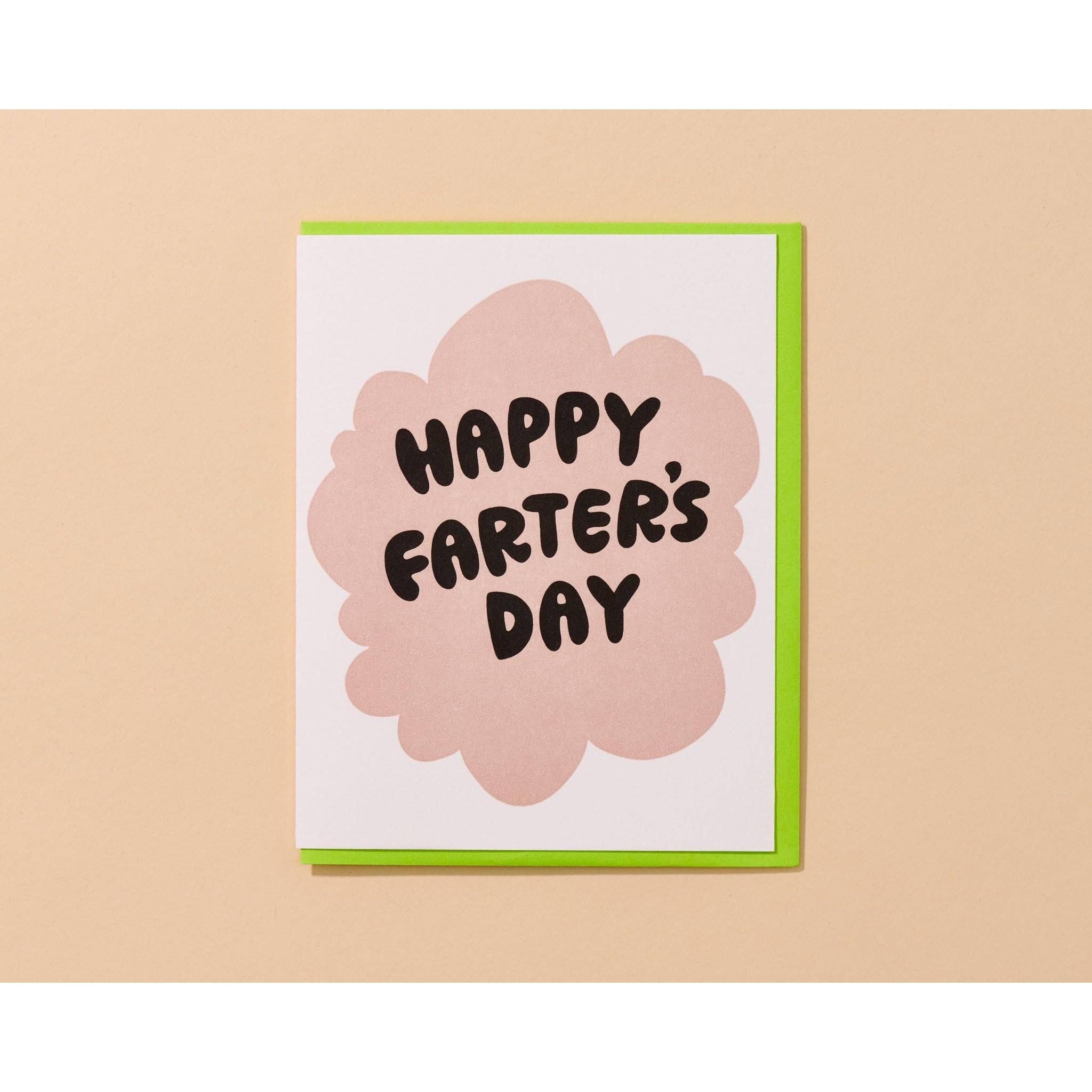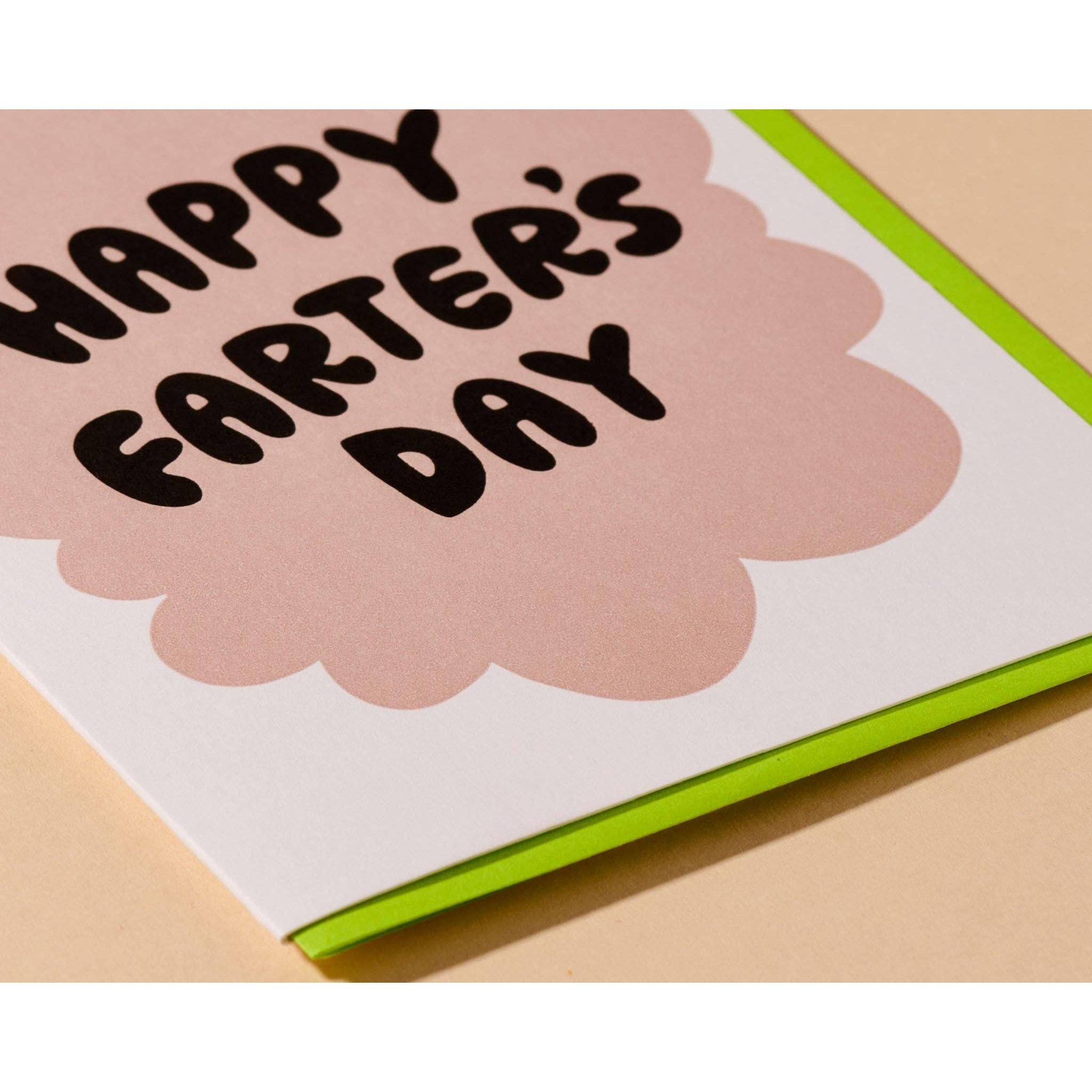 Card reads "Happy Farter's Day" in an implied fart cloud.