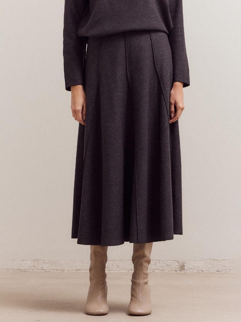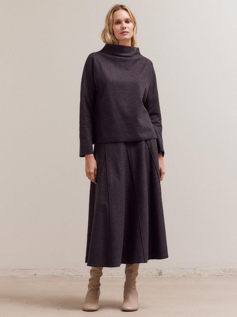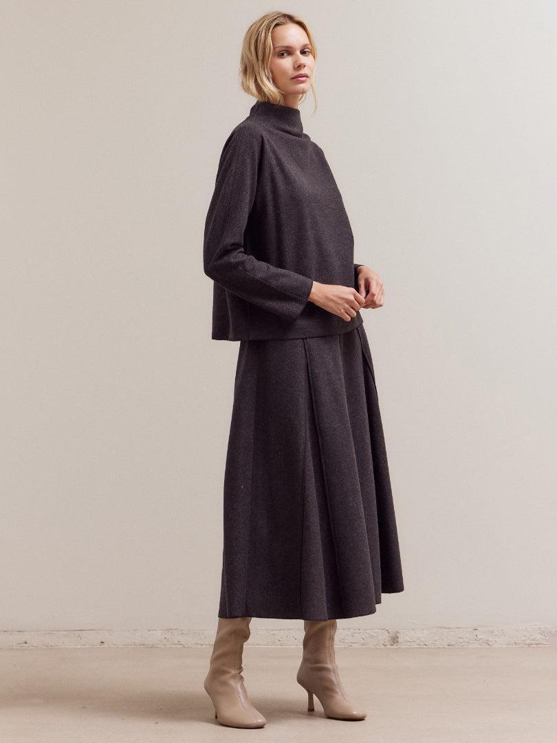 The Grade & Gather Knitted Pleats Skirt in charcoal adds a fun twist with its cozy knit and flirty pleats. Pair with Mock neck sweater charcoal for a great pulled together look.