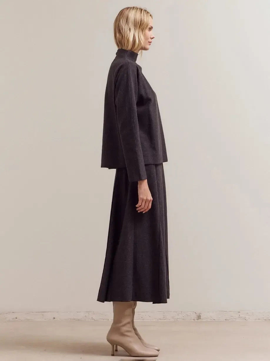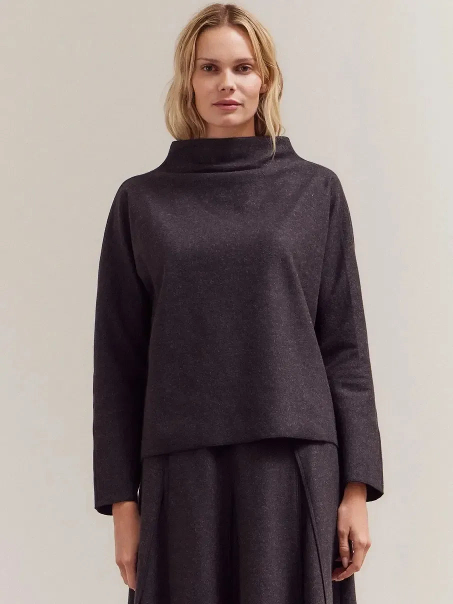 Cozy up in this charcoal mock neck sweater with a relaxed, easygoing fit.
