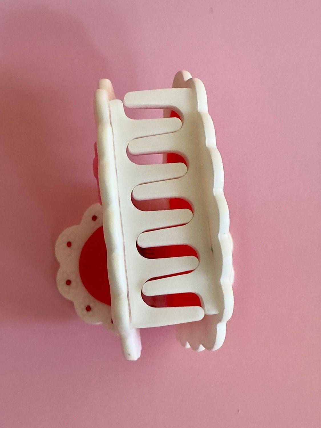 Be my valentine with this cellulose acetate Laced Heart Hair Claw on mate finish!