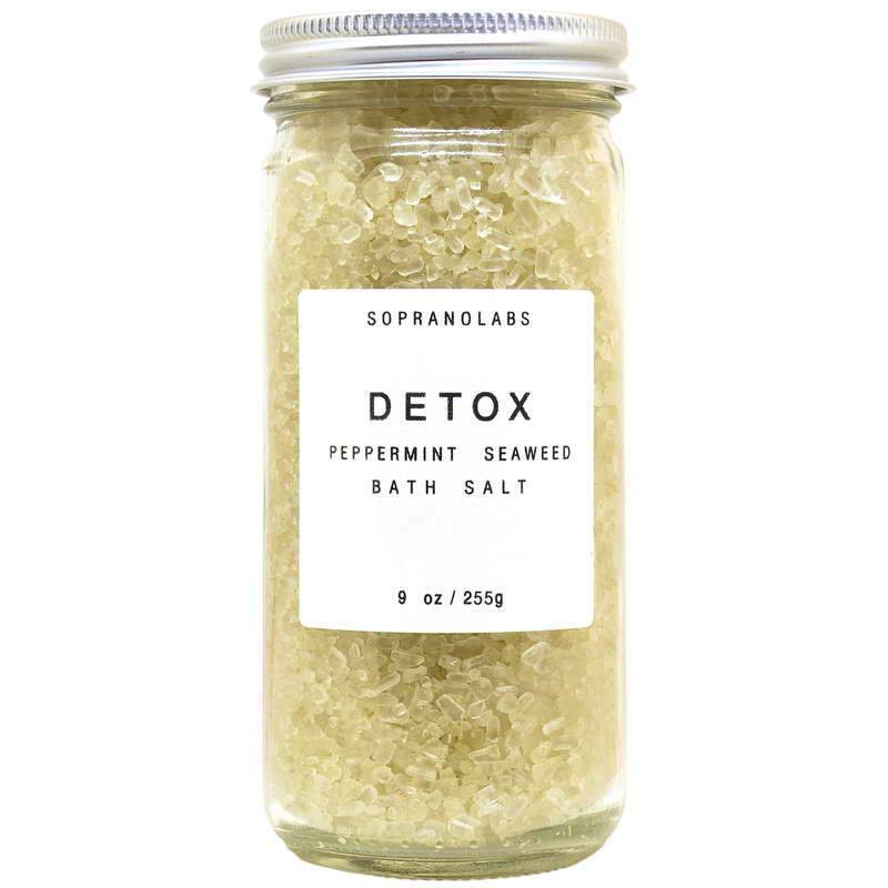 Detox Bath Salt is a luxurious bath soak made with four salt varieties and seaweed extract. The blend of eucalyptus, peppermint and spearmint essential oils uplifts mind and detoxes body. Epsom salt aids in calming muscles and eliminating toxins. Bathing in Dead Sea salts encourages dermal absorption of minerals and stimulates blood circulation. Seaweed botanical extract nourish and revitalize skin. Natural plant essential oils provide a safe, subtle fragrance without chemical enhancers. 9 oz.