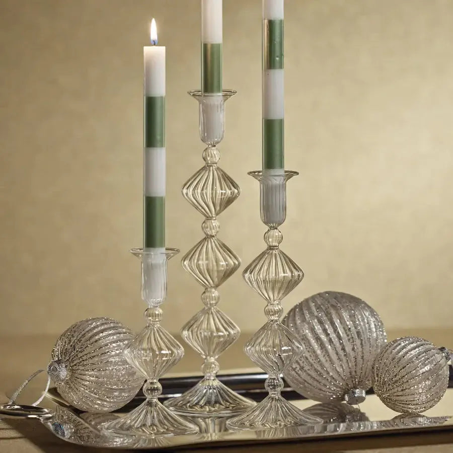 Create a luxe and sophisticated atmosphere with the Candeliere Glass Taper Holder. Expertly crafted from ribbed glass for a stunning, glossy finish, this exquisite decorative piece makes a bold statement and adds an element of elegance to any interior.