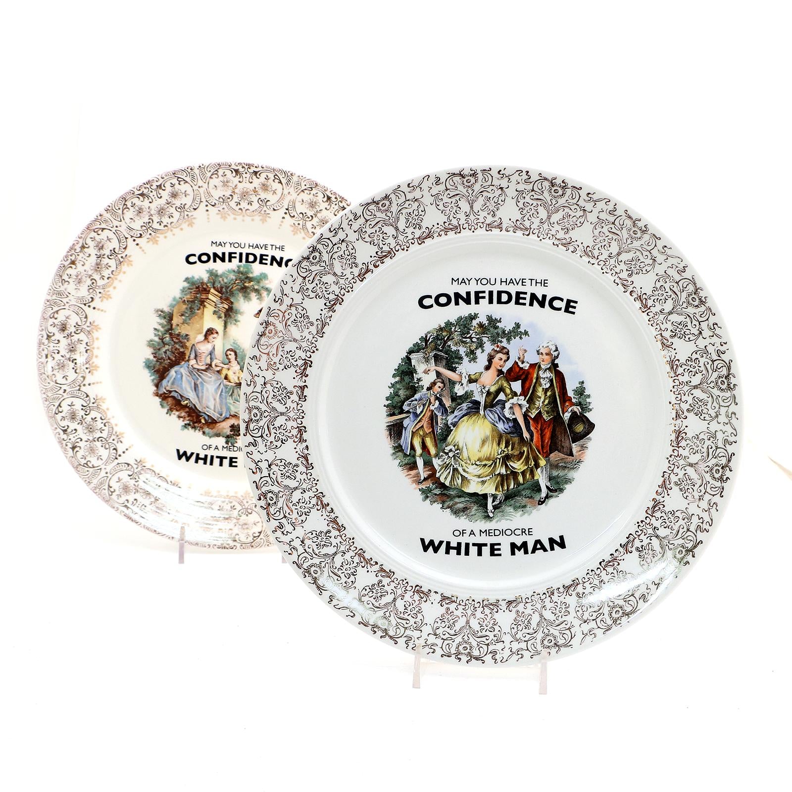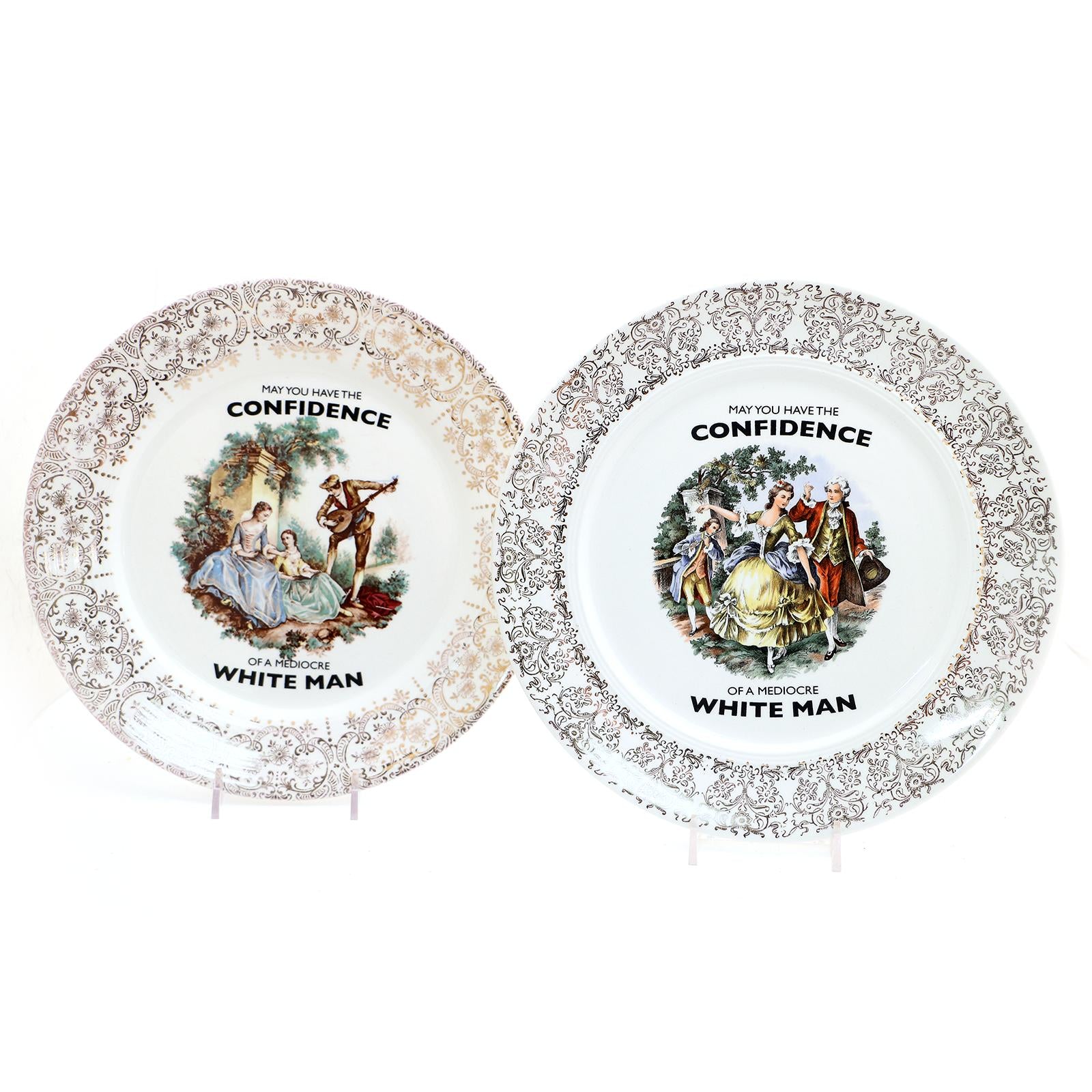 ASSORTED STYLES OF VINTAGE ROMANTIC COLONIAL DINNER PLATES 1 each of Assorted 10" plates with Text pictured (Confidence of a Mediocre White Man). Price is for one plate. All item are food safe. Hand wash Recommended.