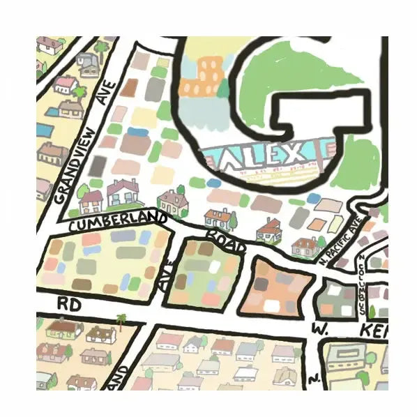 This is a hand-drawn map that is then colored using Photoshop. Artwork is professionally printed using archival paper and ink and signed by the artist Tom Lamb.