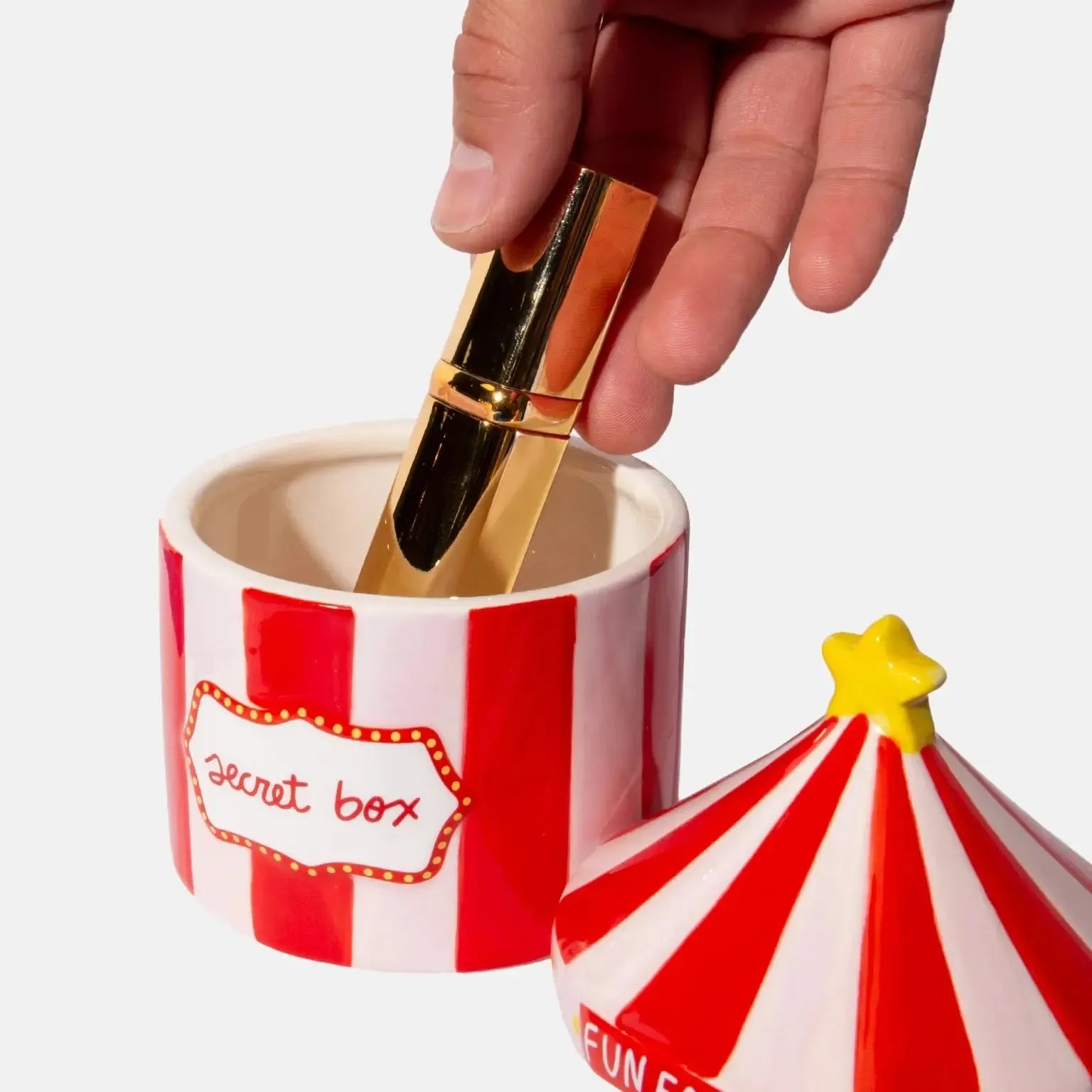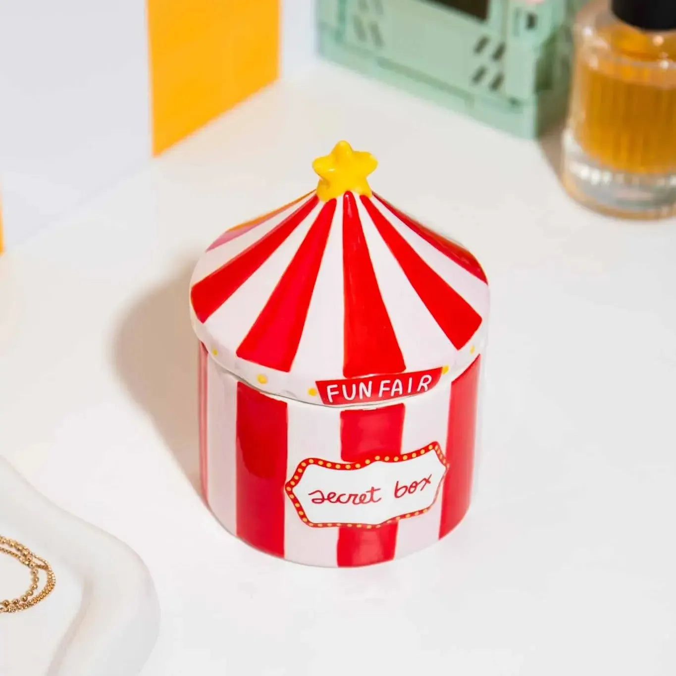 Turn clutter into color with this circus tent-inspired storage box. It’s a funfair in a box for maximalist organizers.