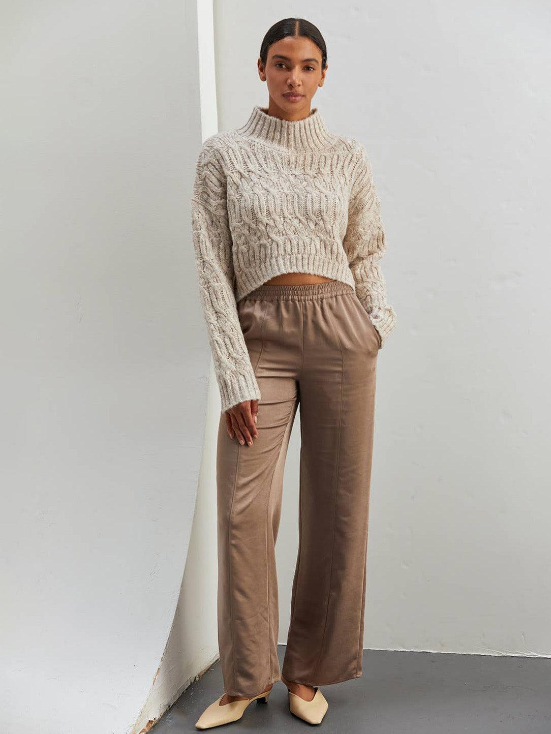 Embrace effortless style and cozy comfort with our Lena Mock Neck Cropped Sweater. This chic pullover features a brushed fabric for a luxuriously soft feel, a cropped length for a modern silhouette, and a mock neckline for added warmth. The long sleeves with ribbed cuffs, neck, and hem provide a snug and comfortable fit.
