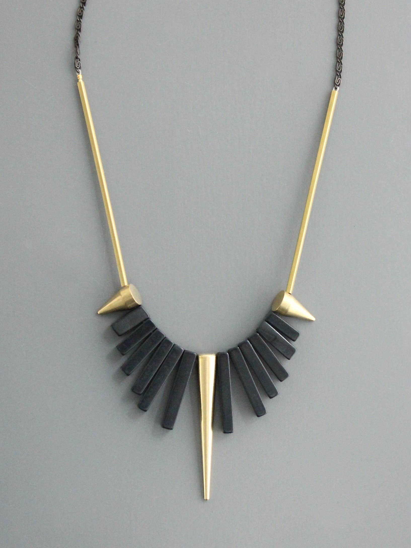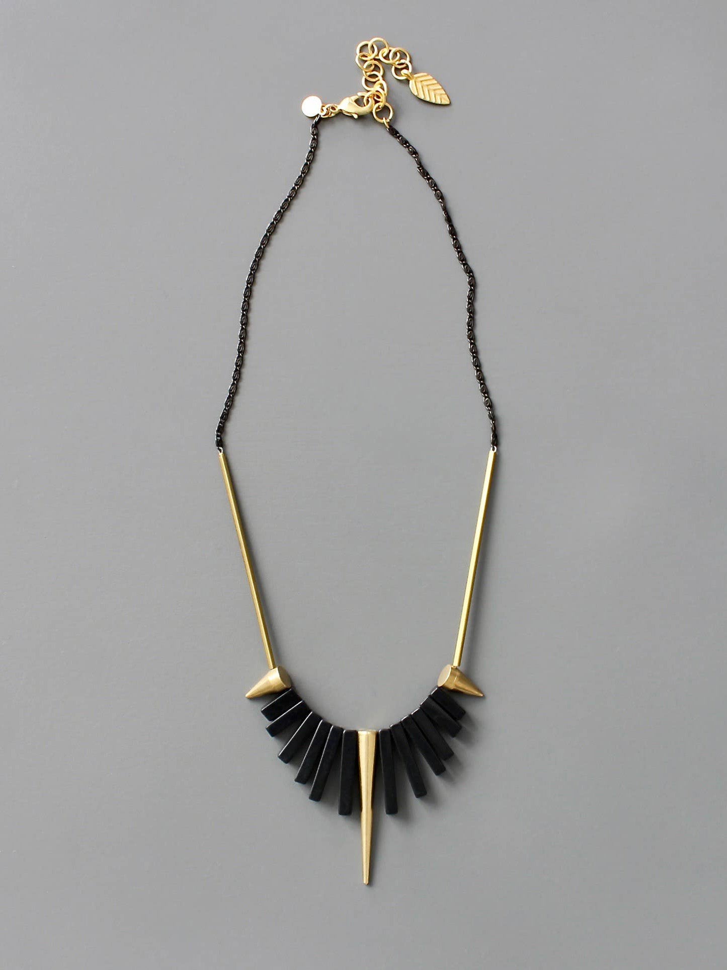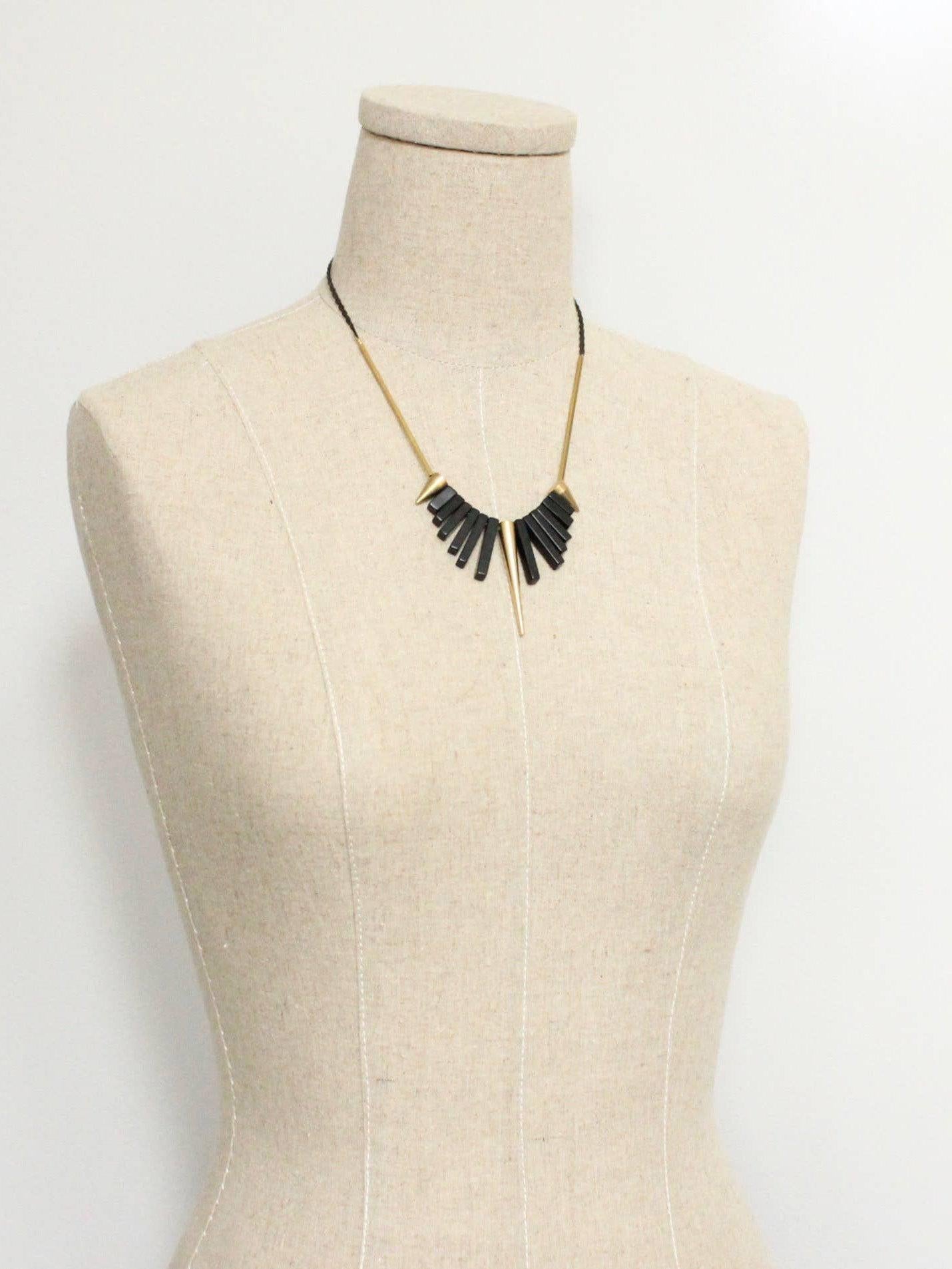 David Aubrey Jewelry - Geometric Black Agate & Brass Spike Necklace
