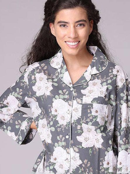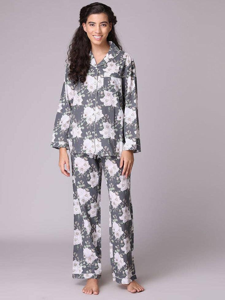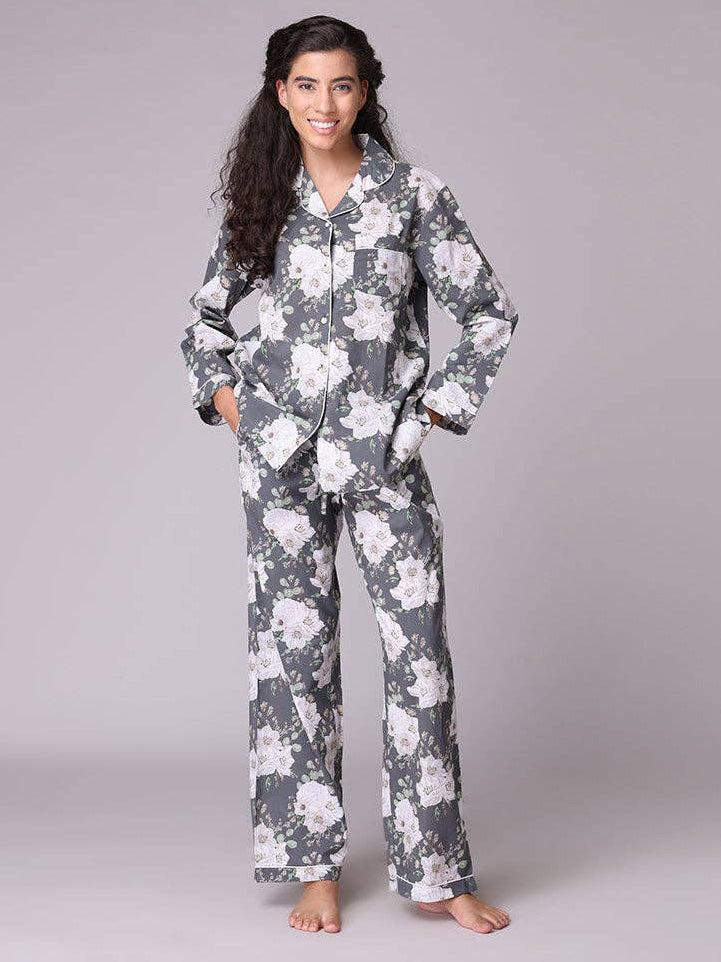 Soft whimsical white roses with calming sprigs of eucalyptus make these PJ's extra chill.