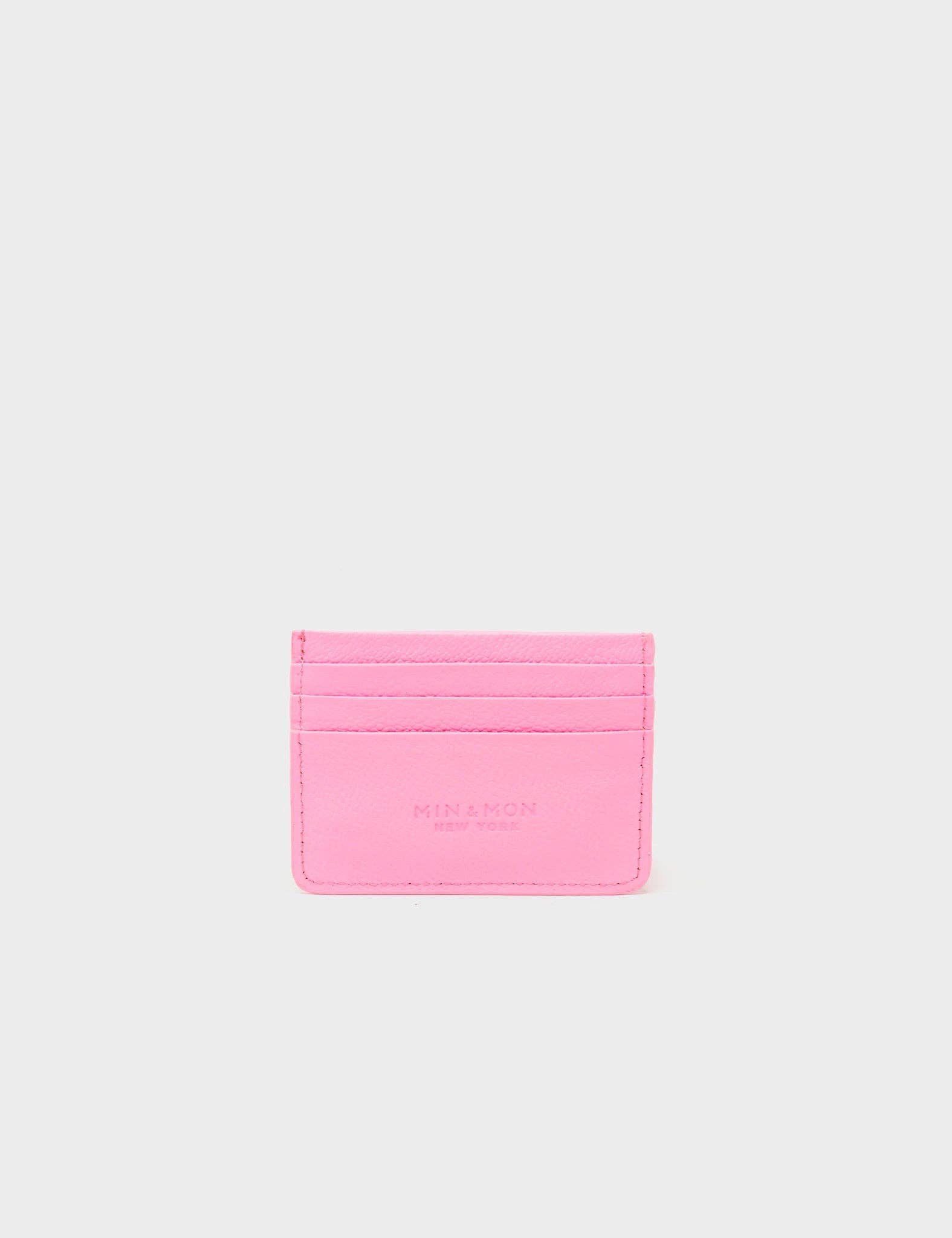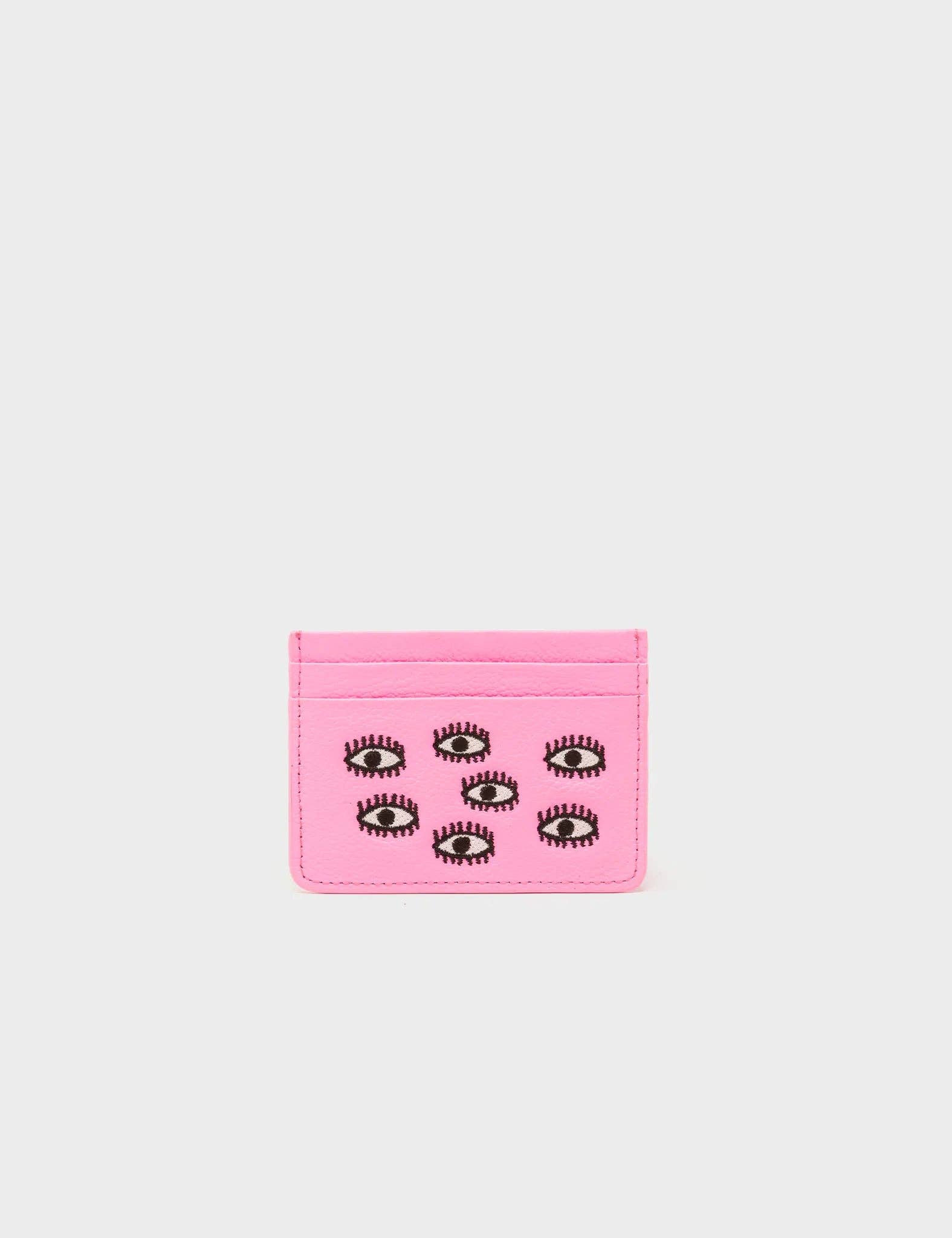 Min & Mon - Filium Leather Cardholder - All Over Eyes Embroidery - Bubblegum Pink