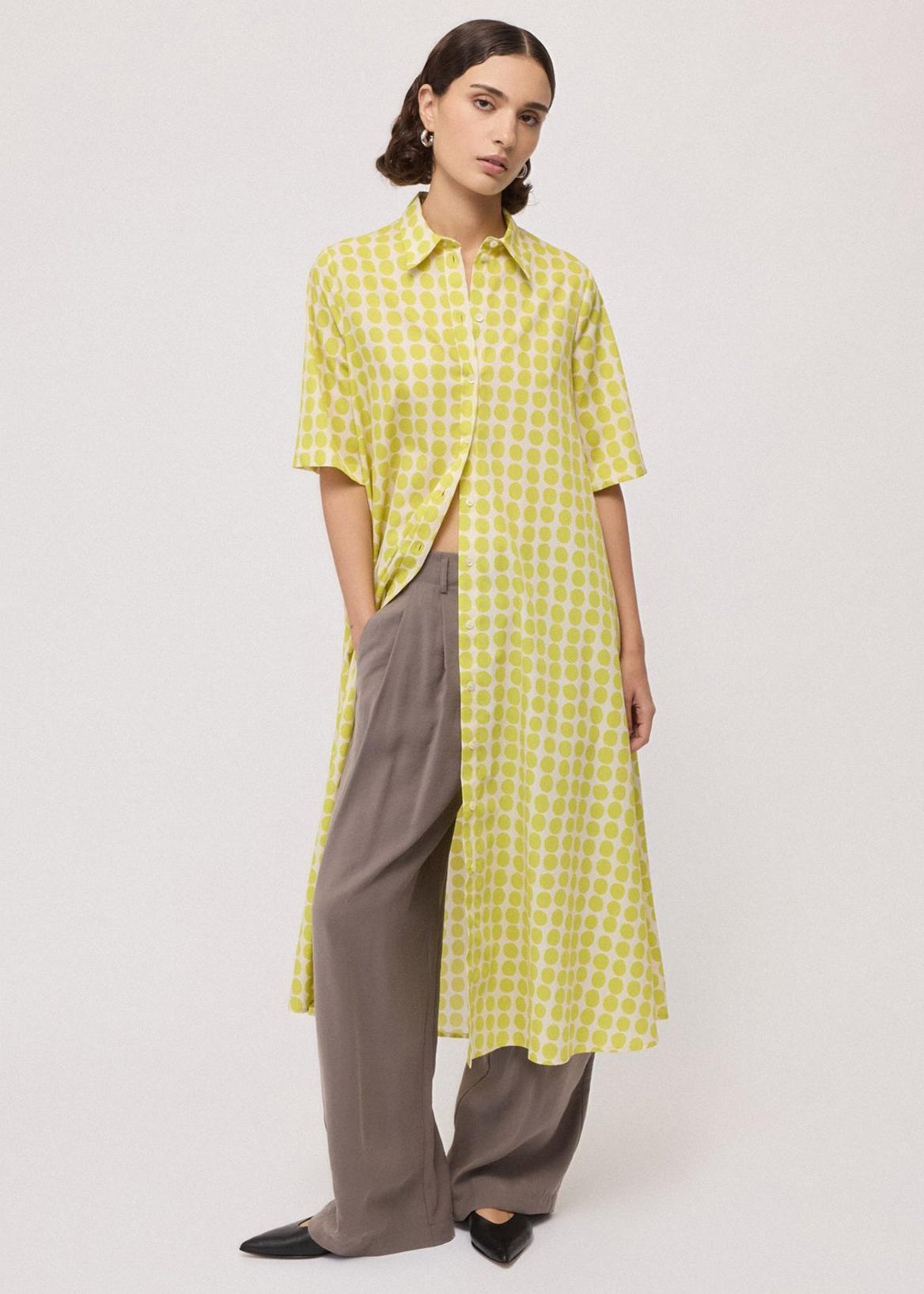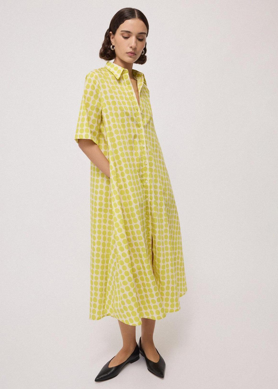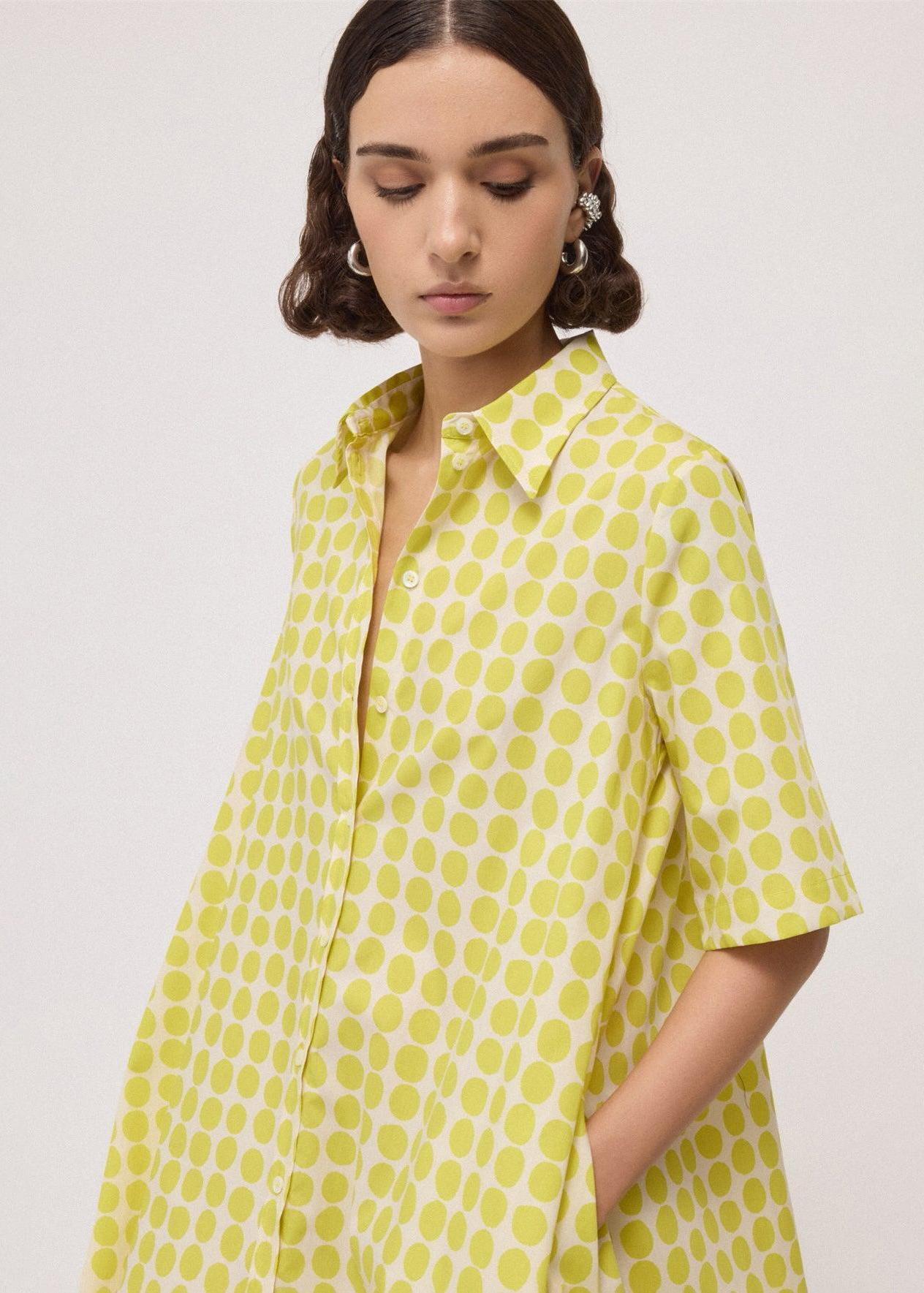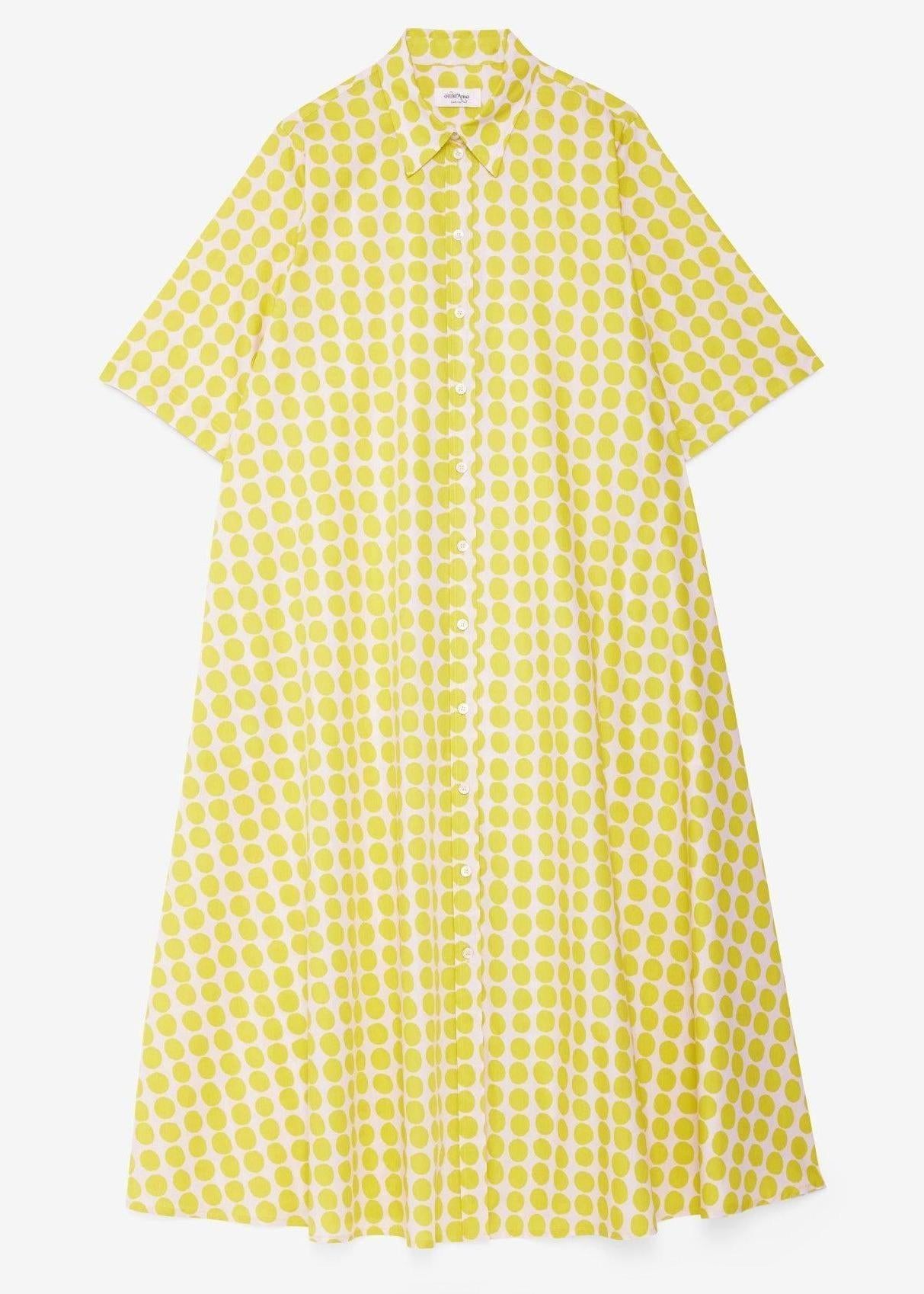 Ottod'ame - Polka Dot Print Shirt Dress - Citrine