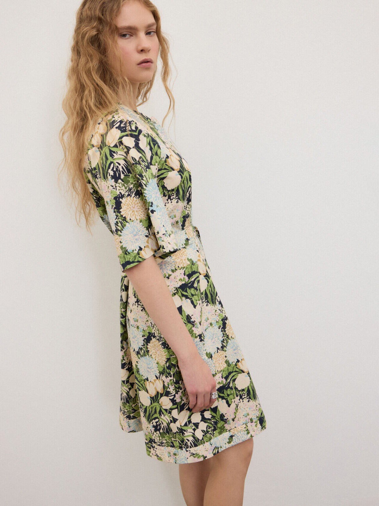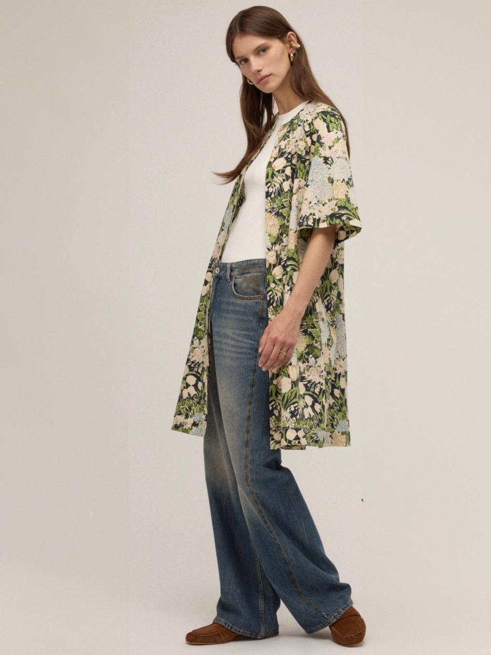 Cool cotton shirt dress featuring a vibrant floral print that transitions seamlessly from day to night. The knee-grazing silhouette works beautifully layered over basics or worn solo for an instantly polished ensemble. Perfect for creating multiple looks with minimal effort.