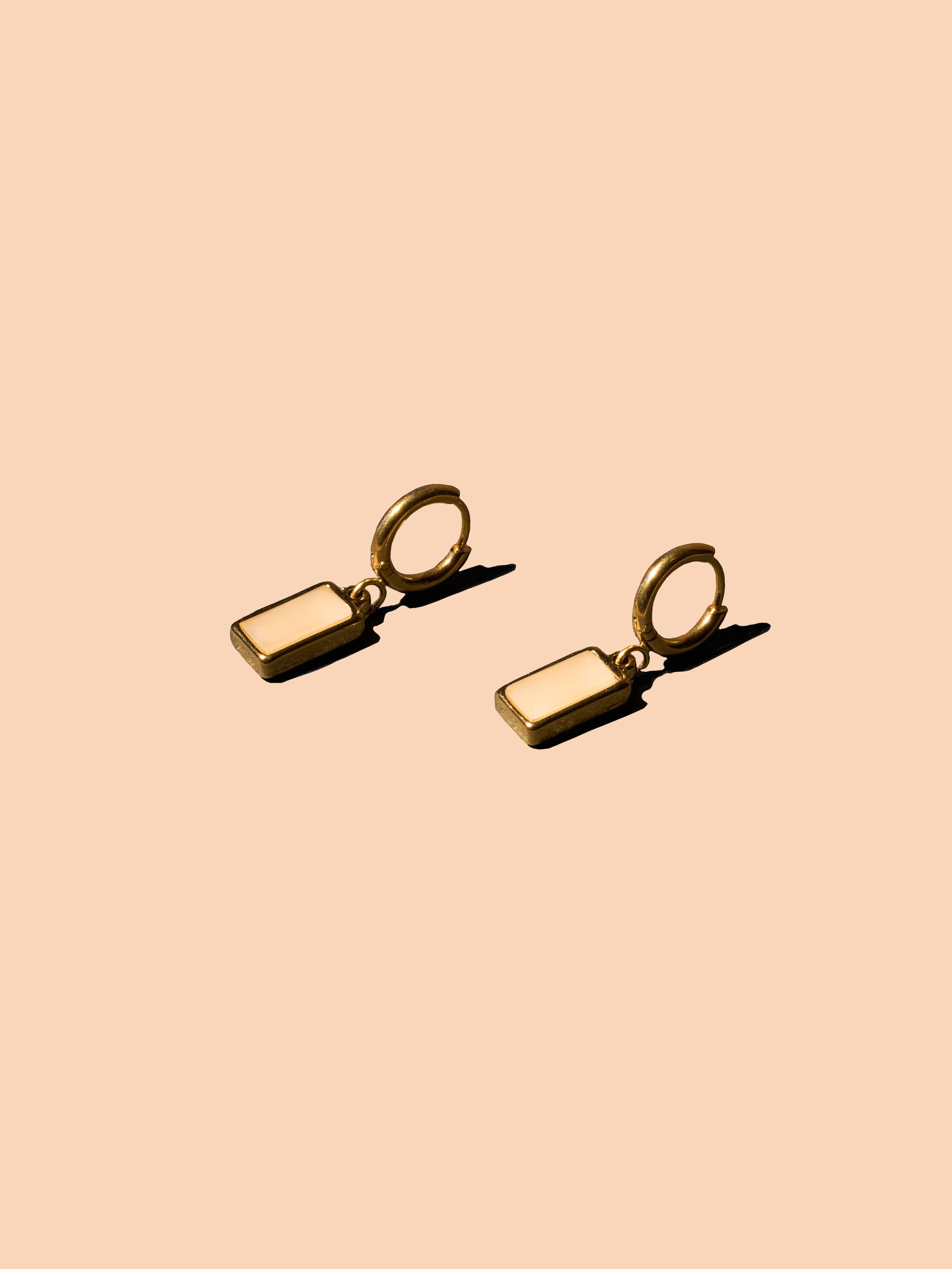 Darling hoops with small rectangular stone dangle.