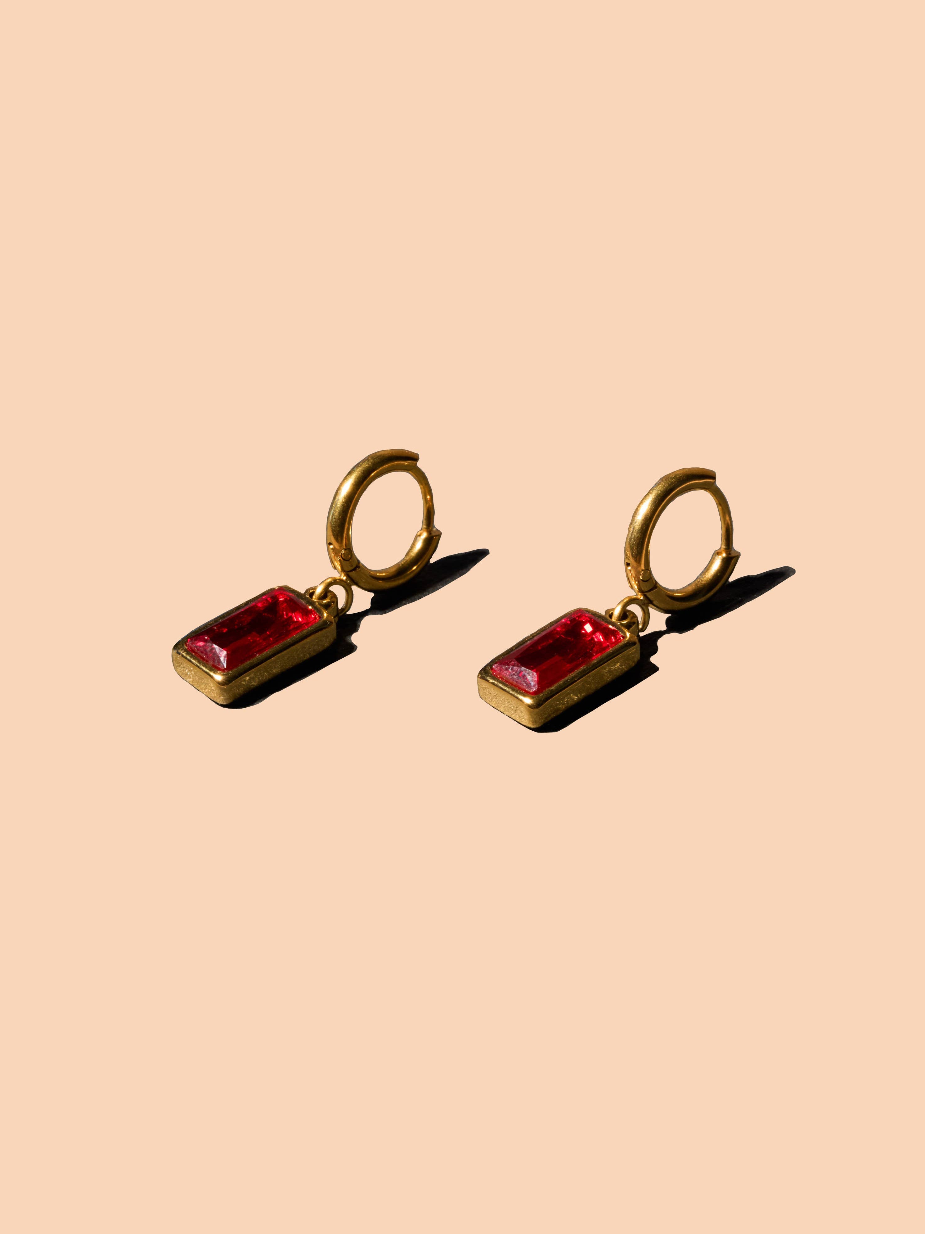 Darling hoops with small rectangular stone dangle.